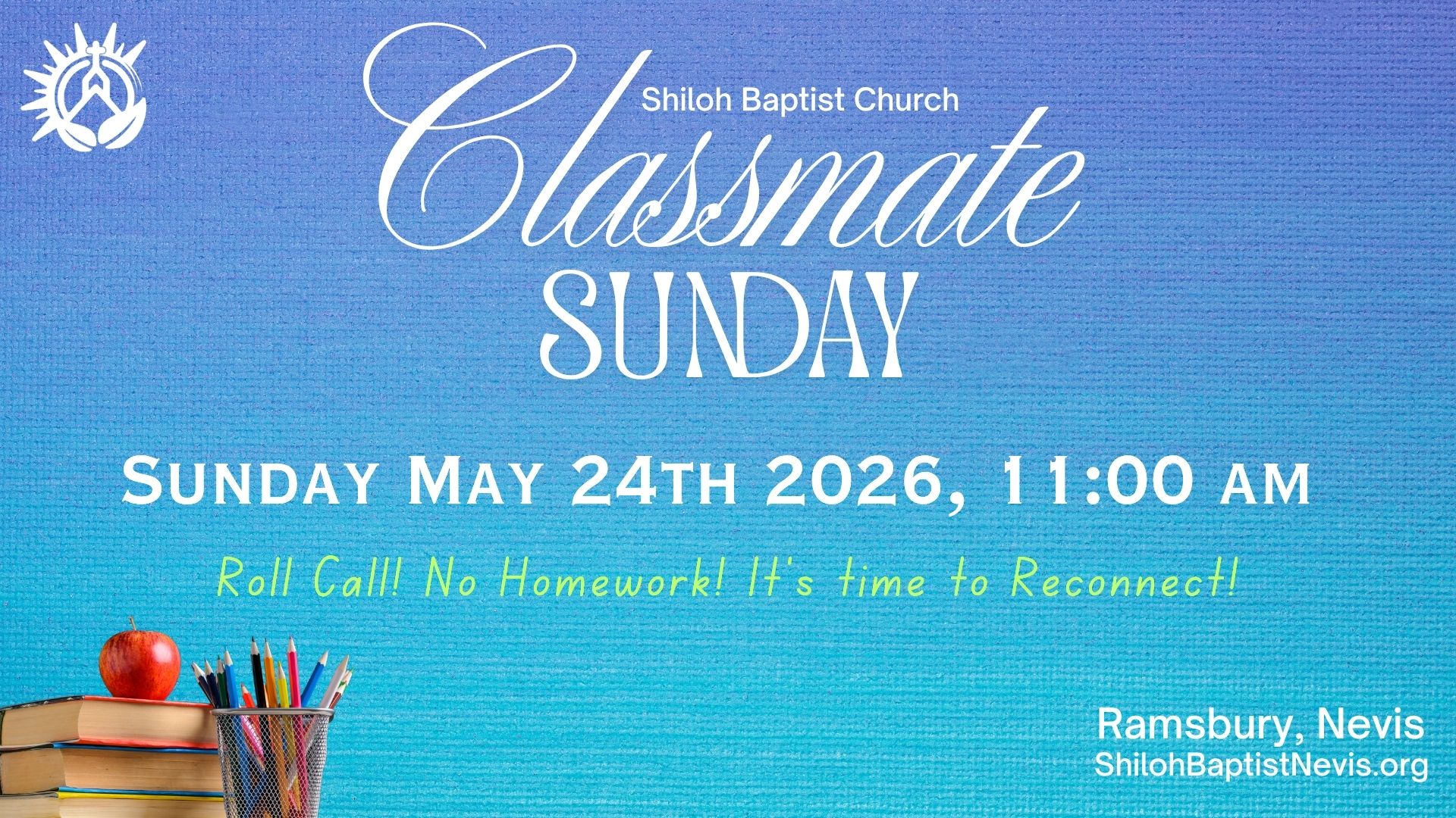 Join Shiloh Baptist Church for Classmate Sunday – a day when we celebrate our associations with classmates and friends that we spent much time with throughout our school days. Come and let’s worship together and have a class reunion in the house of the Lord!